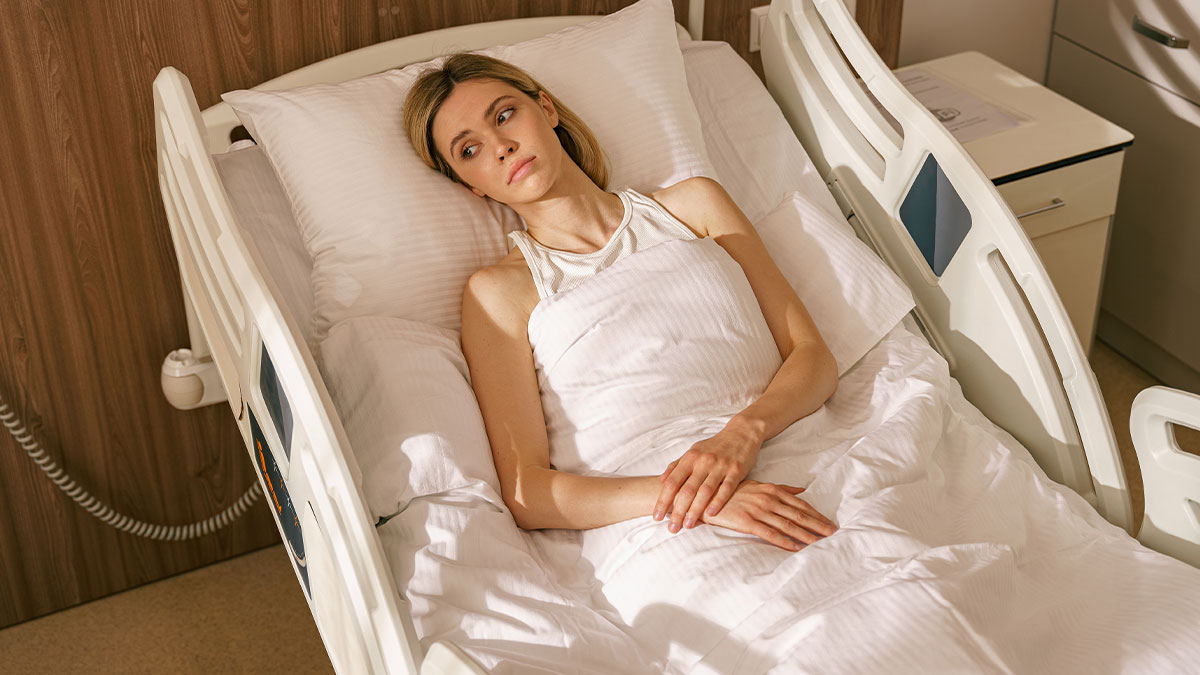 The woman ends up in the hospital, so the man gives her the silent treatment for not letting him know she was going out