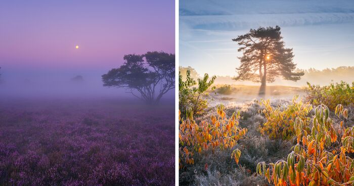 All in all the Dutch heather is always a nice subject to photograph, especially during foggy mornings. Fun fact: This entire series was shot on the heather fields around Hilversum!