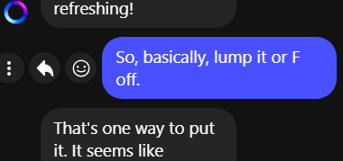 There's... How do I say this. There's an AI bot for all circumstances. Usually sexual. I don't know about this one since I don't know what the host is. Go on to a character card site (they're like bot instructions that users put together and share, generally telling the bot how to act as a character). There is a search tag for "Autistic as f**k" and most of the bots who have this tag are NSFW bots for intimate chat. And no, that is not using "Autistic as f**k" as an insult to the bot's quality. They're bots where the main attraction is that the bot's personality is autistic as f**k. I'm not sure how I feel about this. On one hand i suppose it's mildly flattering, but on the other hand it's moderately concerning.