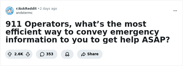 Someone asked “911 Operators, what’s the most efficient way to convey emergency information to you to get help ASAP?” and people detailed their tips and tricks. So get comfortable as you scroll through, upvote your favorites and be sure to share your own thoughts and experiences in the comments down below.