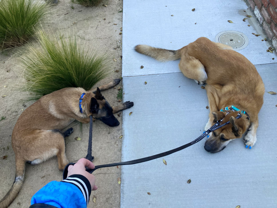 Mang, look at those two good bois! Apparently large-breed dogs were WAY better-behaved 4000 years ago! Behold my two juvenile delinquents when I tried to walk both of them together in January of last year! Sheesh!! XD (* jk, to be fair, the sadboye [Stilgar] on the right is a distemper survivor and has tons of issues due to the virus's effect - mobility and balance issues, neurological issues [myoclonus - constant and uncontrollable full-body twitching, even when he's asleep], and you can see that his heiny-quarters/back legs are bony/not well-muscled due to him not being able to walk for ~2 months while he was battling the virus as a pupper. So he gets a pass - he needs breaks on walks. The bro [Fenring] on the left, however, is a perfectly-healthy young Belgian Malinois. But he loves his "big brother" [~2 years older than him XD] so he constantly emulates Stilgar's behavior and mannerisms XD But Stilly has NO concept that there is anything wrong with him!) the_boys-6...05e187.jpg