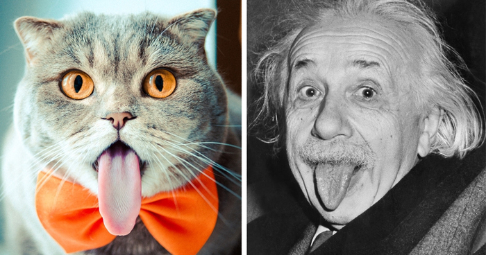 One of the internet’s favorite photos of Albert Einstein features the iconic scientist sticking his tongue out at the camera and showing his light-hearted side. This adorable kitty in Russia named Melissa looks just like Einstein’s famous photo when she sticks her tongue, which is pretty much all the time!