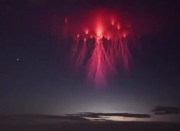Red sprites...they occur above thunderstorms about 50 miles up. Very cool.