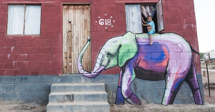 Elephant Street Art In South African Villages To Give People Hope (11+ Pics)