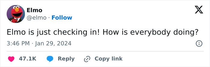 On January 29th, Elmo came to X (at this point, all of us probably know it was Twitter, so no need to say it, right?) to ask people how they were doing. And the answers to this simple tweet were a dumpster fire of emotions.