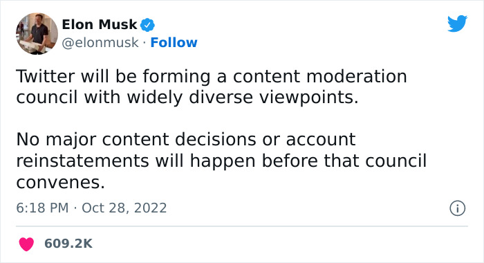 I am pessimistic that this will turn out well but one can hope. I strongly support free speech but I also support strong AI/human combined moderation to catch hate speech and those proposing violence. Someone posts a tweet telling people to ignore the election results and fight for their rights. The same post with the same words could come from President Trump about the 2020 election or President Zelenskyy talking to the people of Mariupol about the Russian sham election. We need an algorithm that flags that post but brings it to the attention of a moderator instead of blocking it and a human moderator who allows Zelenskyy's to go out but blocks and deletes Trumps.