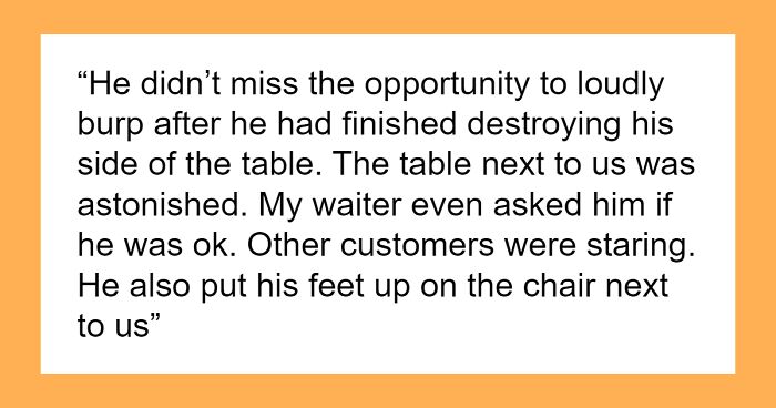 Yet, some people in the comments under the post pointed out that the problem might be deeper than him simply not having proper table manners. They said that by basically mocking both the woman and the restaurant, he was showing signs of his abusive behavior.