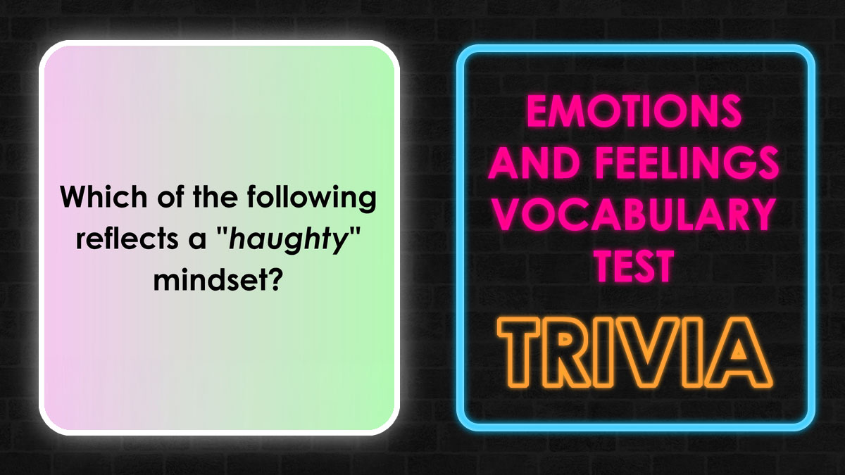 Most of us have felt happy, angry, nervous, or just down at some point. We also know what these simple words mean. Well, what about the fancier words that describe those feelings? This quiz is all about big vocabulary tied to emotions and moods. You’ll get 27 words, and your job is to pick the correct meaning for each of these emotions.