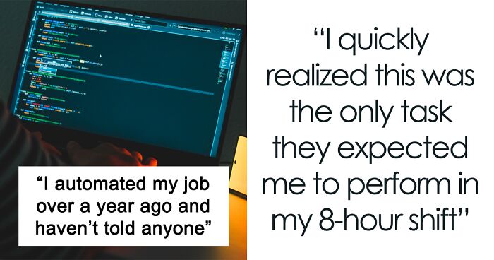 Load More Replies...There are more stories of people writing scripts to handle time consuming but also mind numbing IT tasks. There's nothing wrong with that. And if scripting these tasks means that there's practically nothing left to do for the employee, they are well in their right to use the remaining time as they please. The job gets done as the firm wants it, so the employee fulfilled their part of the contract.