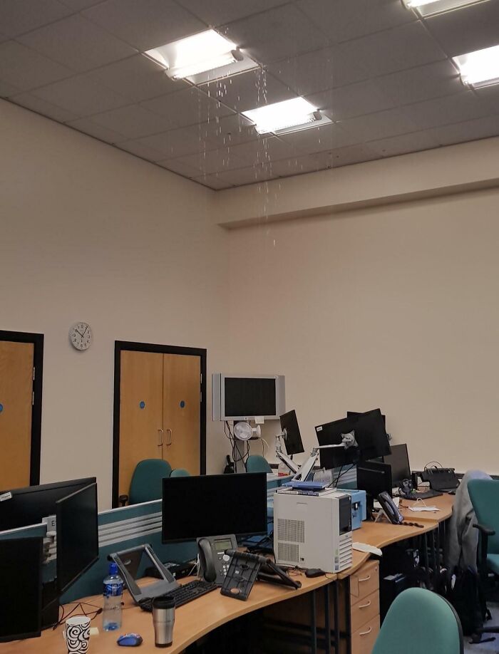 The Ceiling Leaked All Over The Computers At Work