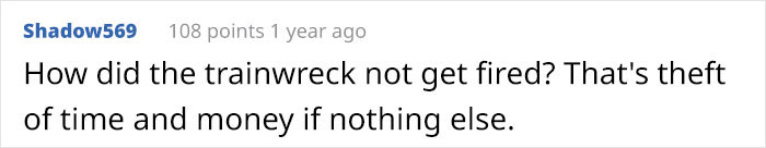 But the new boss Sarah had her own vision of running the plant. “I’m getting a formal warning for my early departures, going into my personnel file,” the author wrote, indicating that the tension reached a boiling point. So, he makes a maliciously compliant move and starts working not a minute more than he’s supposed to. Guess if Sarah is happy.