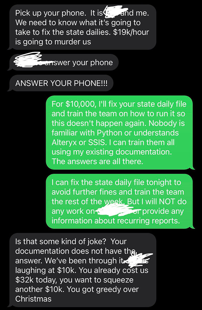 With deadlines approaching and having nothing to show their clients, their angry manager started bombarding their phone with calls and messages, trying to manipulate the employee to return “for the team.”