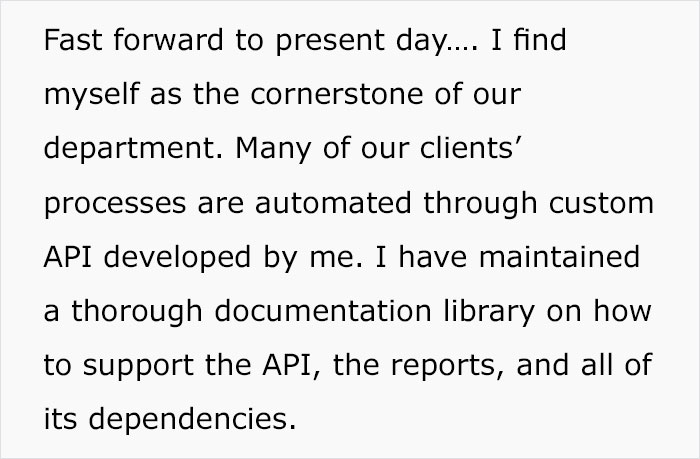 Load More Replies...First off, that client sucks. You can't ignore weeks of requests for a critical input and still expect the company to deliver the work on time. That is a bad client relationship. That said, the company sucks worse. A good project manager and client manager would've fought for its team, NOT the client, by warning the client repeatedly that missing the data would result in delays to the timeline. Get that in writing, and escalate it when the client complains about the delay. And if you KNOW the client will be adamant about their deadline, anticipate the solution on your end by training up someone to fill in for the OP in advance. This absolutely could have been avoided if the company was paying attention.
