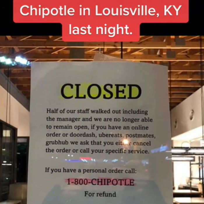 ‘Chipotle’ Sign Saying Staff ‘Walked Out’ Goes Viral (Plus 22 More Similar Signs From Other US Businesses)