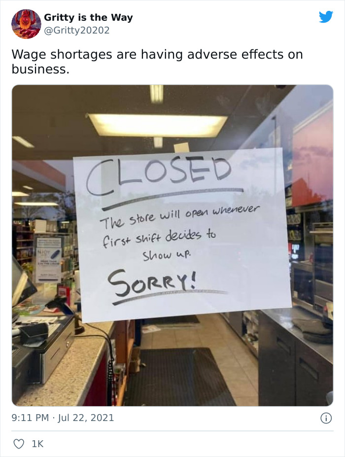Not just the US sadly. I left my job after 12 years because Headoffice decided to reduse costs by reducing personel. Why pay 3 workers when you can make 1 worker run the whole shop, 9 hour shift, no break, easy right? Now the shop is only open a couple hours a day because most of the remaining staff quit