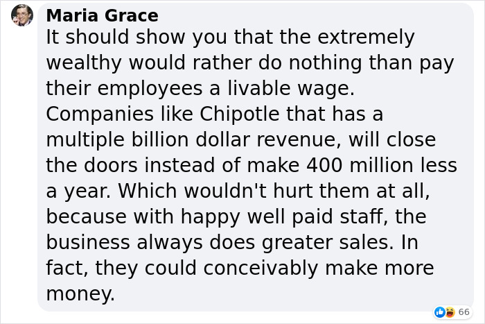 Load More Replies...No CEO should earn more than 10x their lowest paid employee. It is the employees who keep the company open and rolling, and they should all be compensated fairly. No, don't raise the prices to pay them more- cut the top salaries and use that money to pay them more.