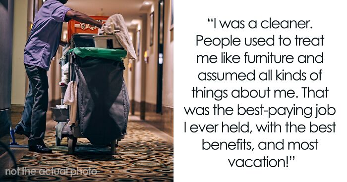 I was a cleaner. People used to treat me like furniture and assumed all kinds of things about me. That was the best-paying job I ever held, with the best benefits, and most vacation! I went back to school for a more “dignified” career, and my “dignified” job sitting at a desk ended up being worse in every way.