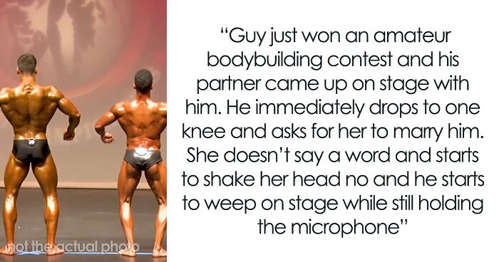 Not myself but I did watch one once and it's god awful. Guy just won an amateur bodybuilding contest and his partner came up on stage with him. He immediately drops to one knee and asks for her to marry him. She doesn’t say a word and starts to shake her head no and he starts to weep on stage while still holding the microphone.