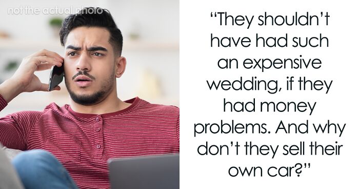 Load More Replies...This is the groom's company. Perhaps a traditional bride's family paid for the wedding and honeymoon--I know people whose parents gave them huge weddings, with many attendee family members & business partners. But that still doesn't excuse the ask--sell my car because you just bought one? Uh, NO!