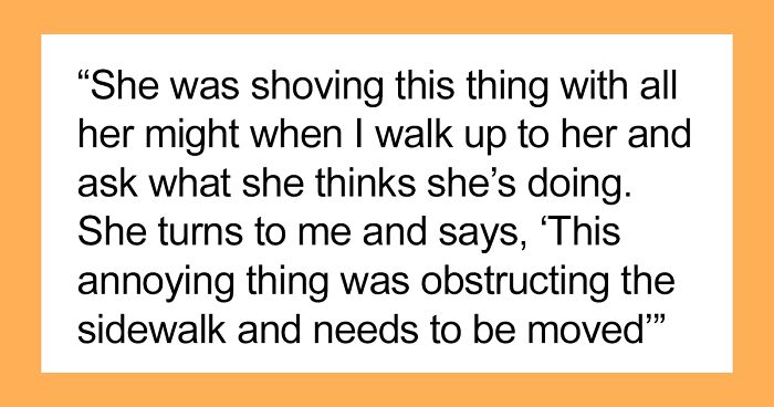 Now, when Karen was asked what she thought she was doing, she had the audacity to complain that “this annoying thing” was blocking her sidewalk and she had to move it. First of all, the author assured her that it was not blocking anything and second of all, instructed her not to touch anything as it is not her property, nor her shop. Right after, the daughter ran over to her mum, who is the manager of the store, but once they got back, the woman had already stopped doing her reconstructions.