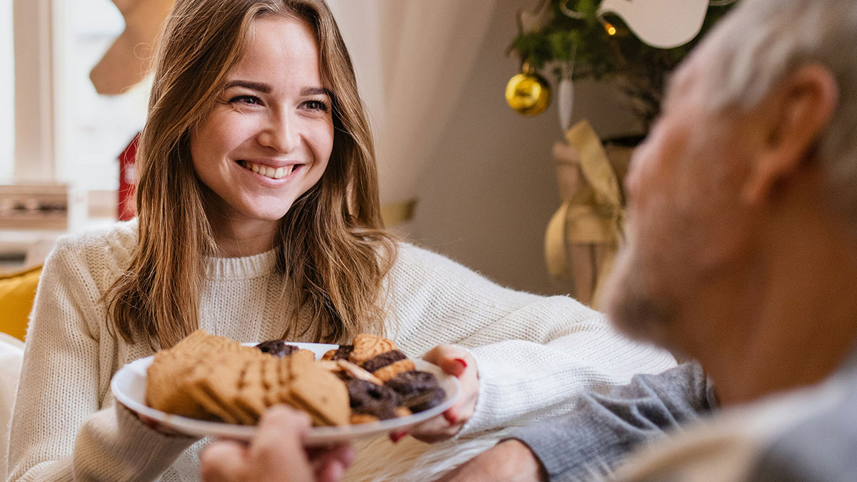 Alongside that, it can be helpful to actively look for positives to balance out the stressful moments. “Intentionally create little pockets of bliss throughout your day,” Walton suggests. “Maybe it’s a quiet moment to sit and enjoy the winter scenery or perhaps it’s enjoying a warm, baked goodie. Maybe your little moment of joy is grabbing a few minutes on the couch with a loved one. As your expectations are hijacked, create your own positives.”