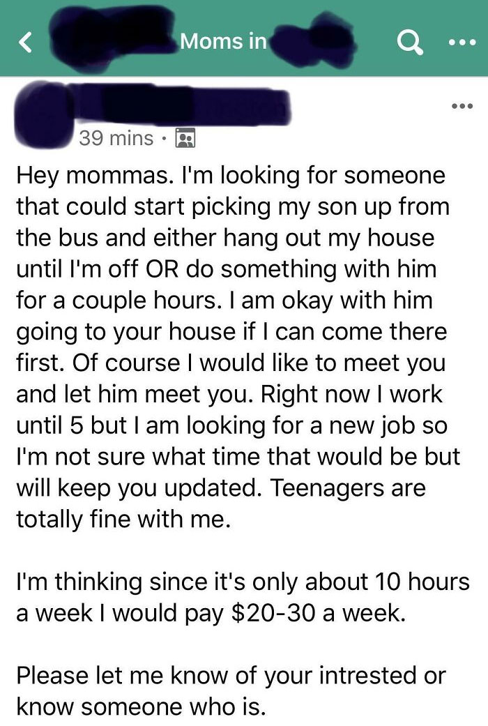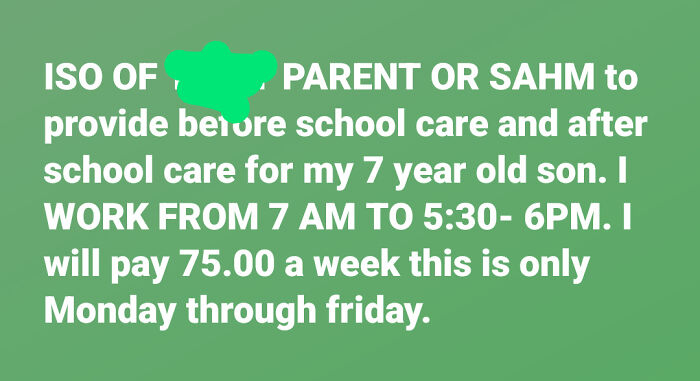 A Local Facebook Group Mom Wants To Pay $100 A Week For Babysitting Overnight And Getting A Child To School