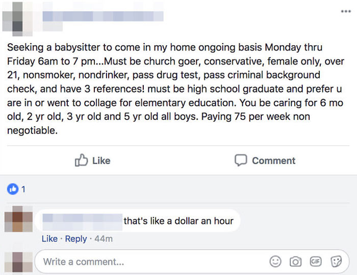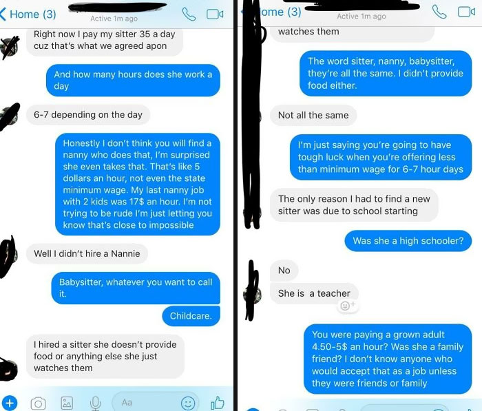 She Blocked Me For Pointing Out $4 An Hour Is Not Enough For A Full-Time Babysitter