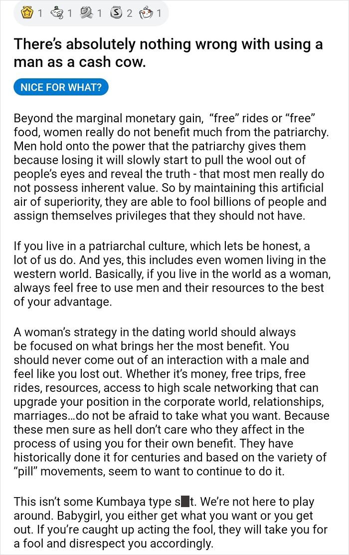 This is a Reddit thing started by women to combat the incel movement except they don't murder or rape the men. They take their money and influence. It's toxic and it's just as radicalized as the incel crap but way less violent. Hopefully it doesn't often translate to the real world and stays on the internet