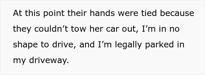 Load More Replies...Someone suggesting they call a tow truck in addition to haveing blocked them in is a diabolical genius.