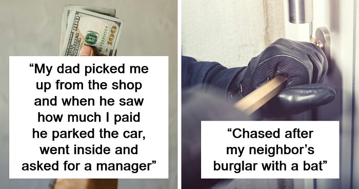 Load More Replies...When I was a kid and my parents were in their mid 20s, my mom worked at the local mall at night while my dad worked during the day. Some d******d kept parking inches from my mom’s car on the driver’s side, forcing her to crawl through the passenger’s side before she could drive home at the end of the night. After several incidents of this and her telling my dad, he and his buddy took their cars to the mall and had my mom point out the car that kept blocking her in. They took their cars and parked inches from both sides of the offending car, preventing the owner from getting in at all, and left a note on the windshield with his phone number, saying to give him a call if there was a problem with his parking. The dude actually called my dad to complain, and what came out of my dad’s mouth was some of the most foul, hateful, s**t I’ve ever heard. I’m paraphrasing, but it was something to the effect that if he ever did it again, it would be the last mistake he ever made. My mom never had a problem with him again. Not epic I suppose, but I thought it was pretty bad*ss.