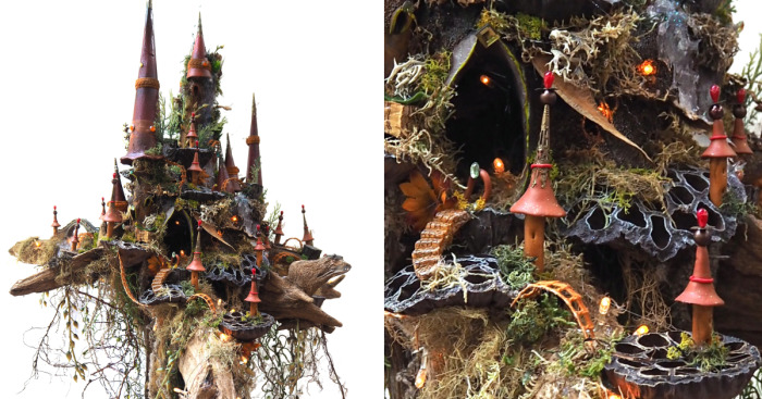 Nature is another inspiration for me and I like to use many natural products in my work. Recycling old unwanted stuff, like those hideous lamps from your grandmother is also a passion, maybe you can see that in some of my worlds. Most items have lights in them.