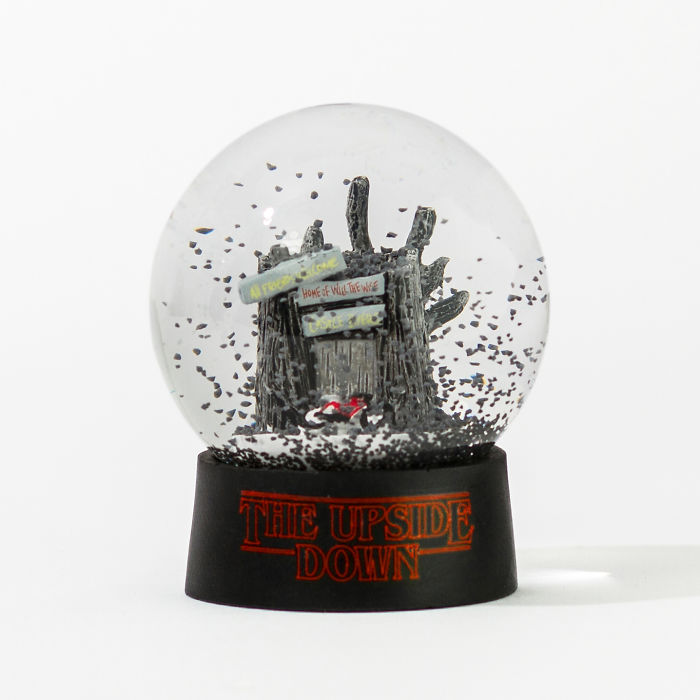 The Upside Down Snow Globe contains a tiny version of Will’s ‘Castle Byers’ hideout, complete with the red bike he used in his desperate attempt to flee from the clutches of the fearsome Demogorgon.