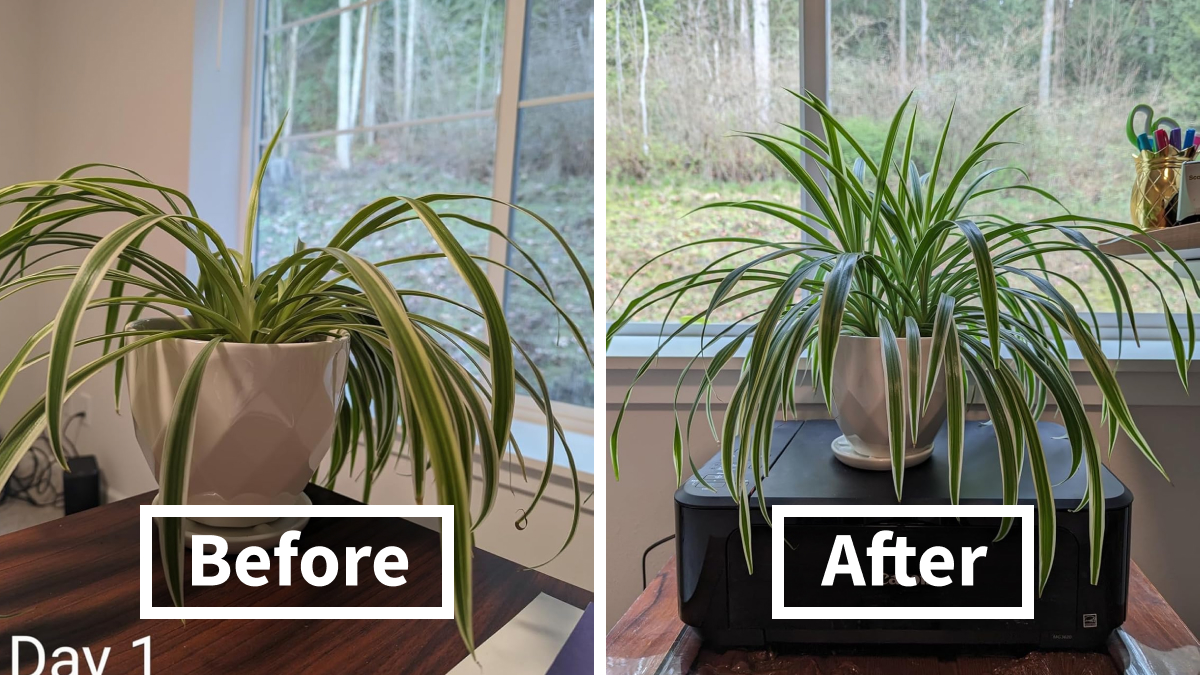 Review: "Though I've been sure to give it steady water and sun, in February I noticed all the leaves of my spider plant were tilted to the side as if the stalks were too heavy for it to hold up. So I got the plant food sticks, and though the directions said give four I only gave it two spikes to start (one plant food spike on each side of the pot) and after about a month and a half you can see how Happy it looks now. I was so worried about my little plant." - Stephanie