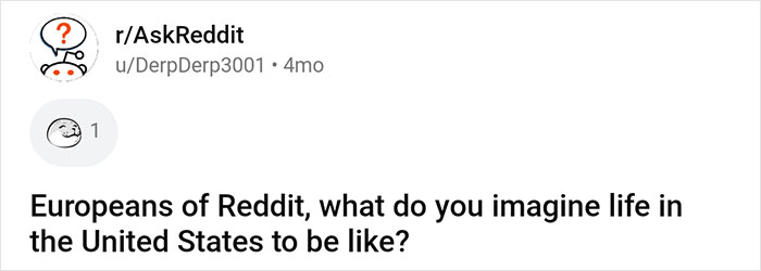 Reddit user DerpDerp3001 recently started a conversation asking Europeans what they imagine living in the United States is like, and hundreds of people weighed in with their honest answers. We’ve gathered some of their replies down below, so feel free to upvote the ones you resonate with and dispel any misconceptions in the comments. Keep reading to also find interviews with travel writer Maria Haase, of Europe Up Close, and the person who sparked this conversation in the first place, DerpDerp3001 on Reddit.