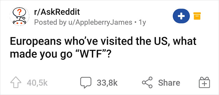 So when someone put up a question “Europeans who’ve visited the US, what made you go 'What The Heck'?” on Reddit, people had a lot to share about their experiences. 33.8k comments later, the answers are in right below, and it will surely put some much-loved all-American things into a very different European perspective.