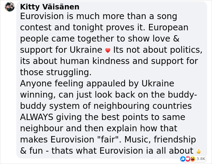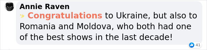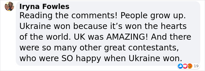Load More Replies...Ukraine won because they were the all round best and EVERYONE wanted them to win, how it should be.