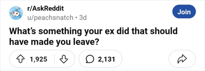 Internet user u/peachsnatch sparked a vulnerable online discussion on r/AskReddit after asking everyone to share what their exes have done that should’ve made them leave right then and there. Scroll down for their stories and what major relationship red flags look like.