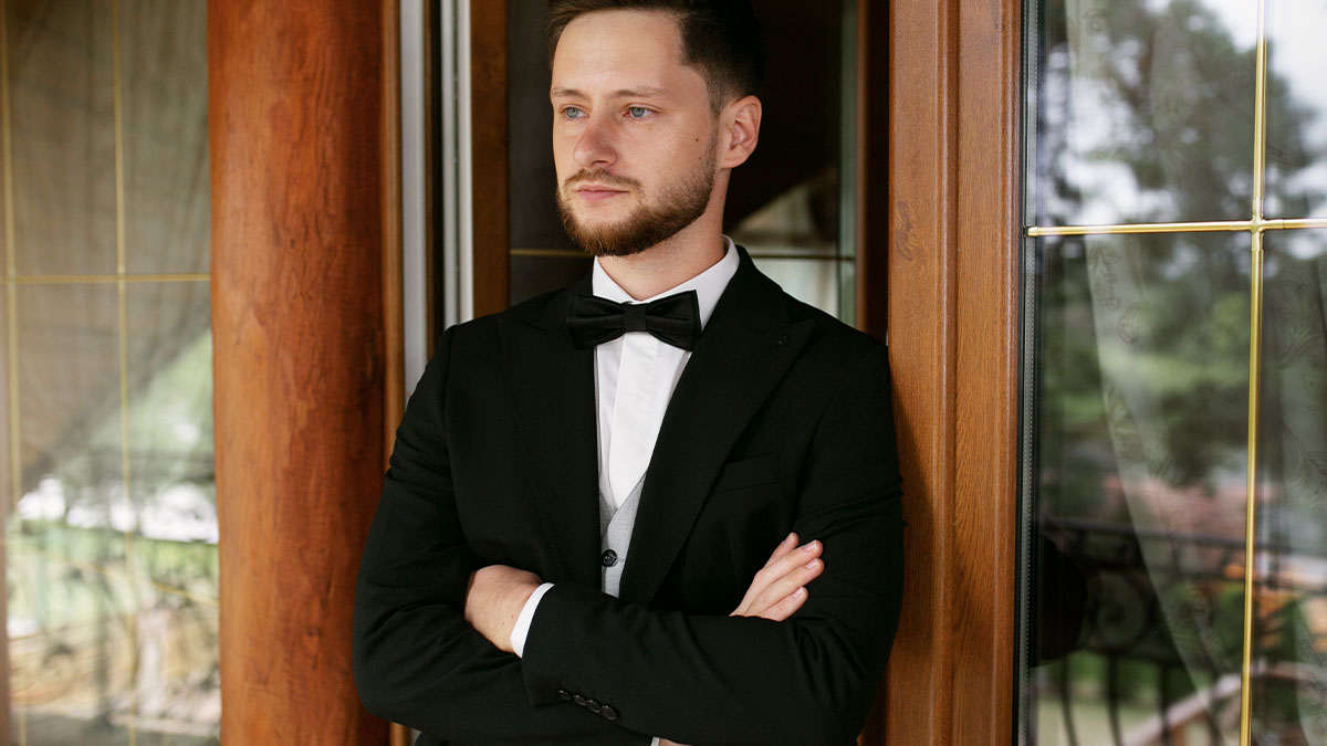 Having seen the photo of the almost-black-suit a few months ago, makes this both the fault of the bride and groom-to-be for not having squashed the suit choice. That’s the opinion of Etiquette Expert Rosalinda Randall when we reach out to her.
