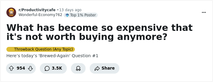 So when someone online asked, “What has become so expensive that it’s just not worth it anymore?” the responses came flooding in. From breakfast staples to simple grooming habits, people shared the exact moment they decided, nope, not paying that anymore. Whether you're nodding along or rethinking your next shopping list, this one hits close to home.