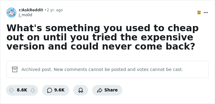 Take the things presented on this list, for example. They were collected from netizens’ opinions expressed in a Reddit thread under the question: “What's something you used to cheap out on until you tried the expensive version and could never come back?”