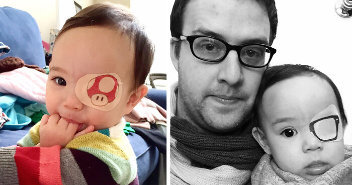 Father and Redditor, nicknamed Gfgrubb, tries to make the best out of a bad situation by doodling cool drawings on his daughter’s eye patch.