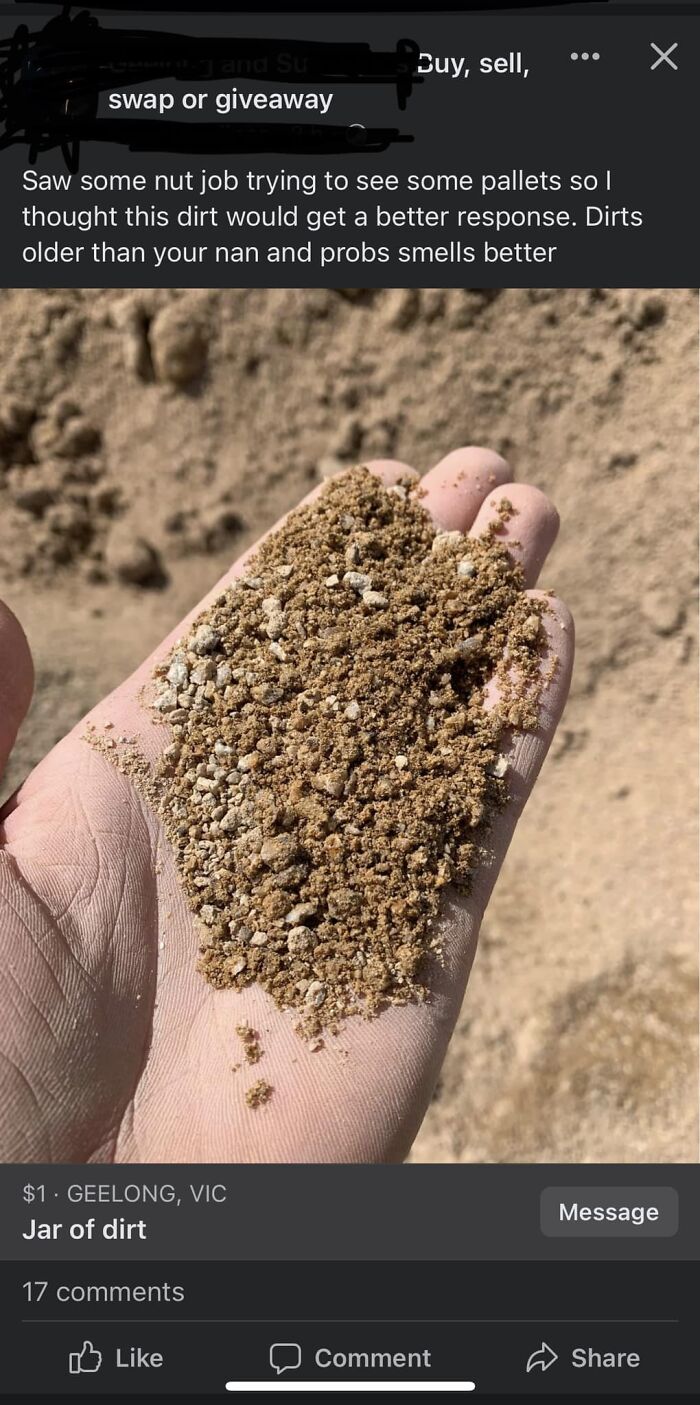 And as far as why people attempt to sell ridiculous things on Facebook Marketplace, Olivia says, “I think sometimes people are obviously taking the piss and bit, but sometimes I truly believe that some people are looking to make a few bucks anyway they can. And you kind of can’t blame them for having a crack? I do find the ludicrous items pretty funny though!”