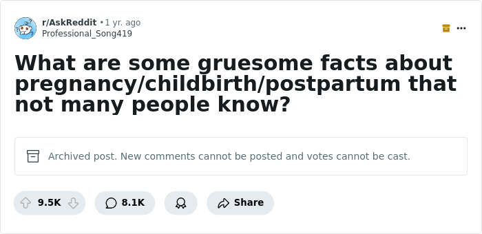Someone asked, "What are some gruesome facts about pregnancy/childbirth/postpartum that not many people know?" and moms who have been through the most didn't hold back. The post clocked up more than 8,000 comments, as people shared their own personal harrowing birthing stories, alongside the lesser-known facts they wish they'd been told earlier. Bored Panda has put together a list of the most hair-raising and jaw-dropping ones. Some might make you want to pass out. But keep scrolling for yet more proof that women truly were built to be warriors.
