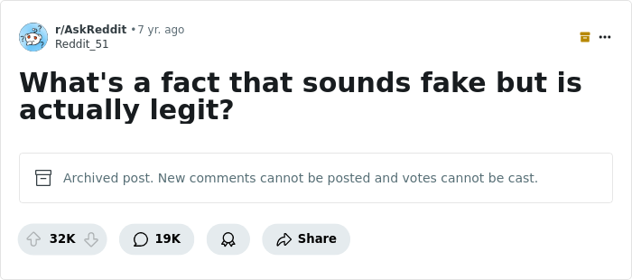 In an age of fake news, you’d be forgiven for questioning some of the facts that pop up on your feed. But there are a surprising number that sound like cr*p but are totally legit. Someone once asked, "What's a fact that sounds fake but is actually legit?" and thousands of answers came rolling in. The list reads like an encyclopedia that never made it to print.