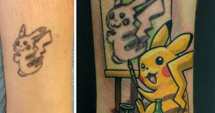 Now scroll down below to witness the best possible outcome form the worst possible situation with this amazingly cool Pikachu tattoo cover-up!