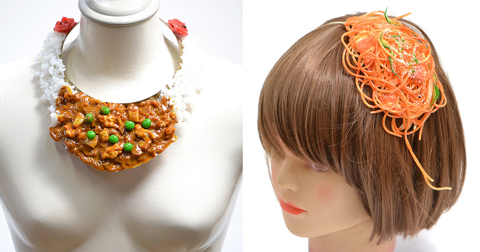 I considered what should I create to expose the fake food to public view. And as I was interested in fashion, I decided to make accessories that have a food motif. I get inspired for my work from casual daily scenery. Easily available common food items are charming as they are, though people sometimes don’t notice that.