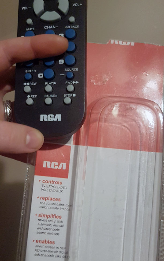 My Husband Bought What He Thought Was An RCA Universal Remote At A Bargain Shop. He Couldn't Figure Out Why It Wouldn't Work Until He Noticed The Remote Was RGA Brand