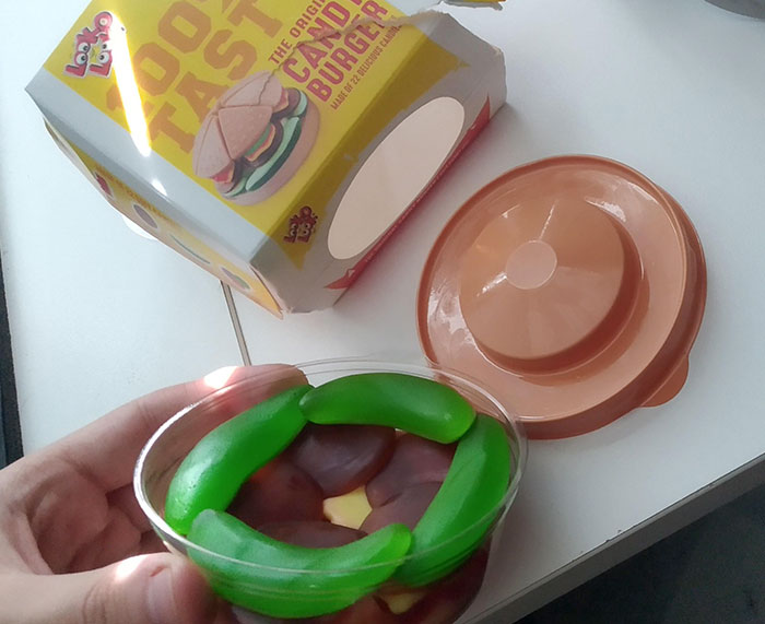 This Candy Burger's Bottom Bun Is Plastic Packaging Instead Of Candy, And It's Hollow From The Inside