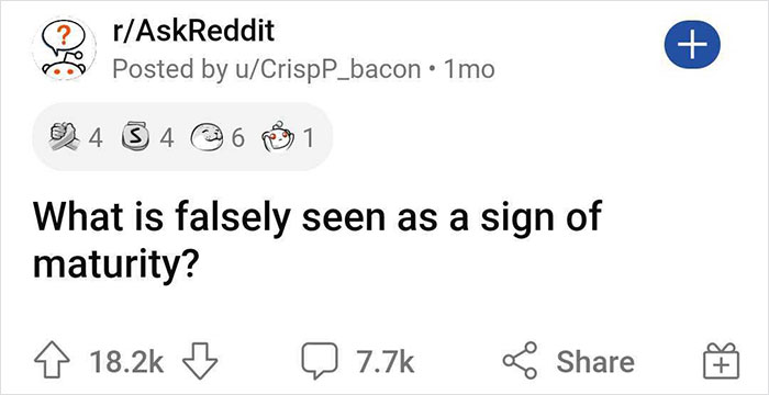 Recently, Reddit user CrispP_bacon started a conversation asking people to share things that are often perceived as false signs of maturity, and many readers shared their opinions in the replies. We’ve gathered some of the most honest and thought-provoking responses down below, so you can read them and decide if your idea of “maturity” has shifted. Be sure to upvote the replies you agree with, and feel free to share your own thoughts in the comments below. Keep reading to also find interviews we were lucky enough to receive from Vanessa Frazer, LCSW, of Modern Therapy, and Hanan Parvez, the man behind PsychMechanics, to hear his thoughts on the topic. Then if you’re interested in reading another Bored Panda article examining what it’s really like to be an adult, check out this story next.