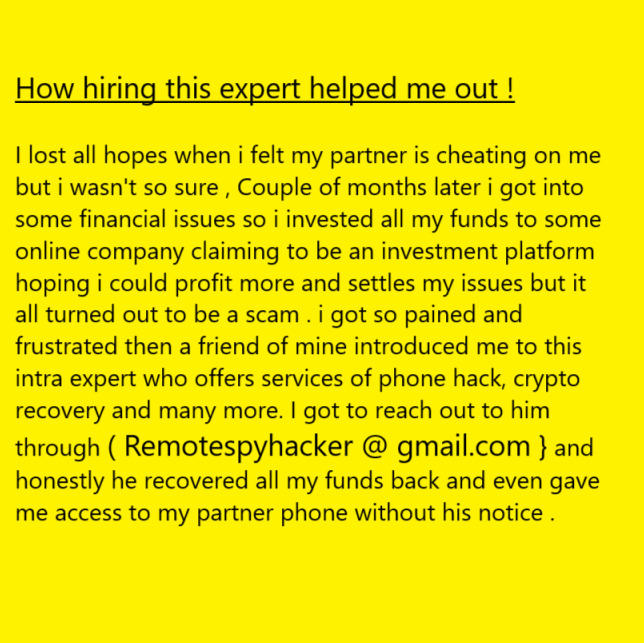Load More Replies...Wondering, how to track a cheating wife and obtain proof of her unfaithfulness? Well, the easiest way to catch a cheating wife is to access your spouse’s phone remotely without them ever finding out. With such a cyber professional ( REMOTE SPY HACKER @ G(M)AIL C0M ) you can do a lot more than just read her text exchanges in real time. For instance, you can use Remote spy hacker to catch your wife cheating on WhatsApp or other messaging apps. Once you provide her phone number and they get her data activated, it allows you to remotely access all WhatsApp texts and photos, as well as messages from social media platforms like Facebook, Instagram, and Snapchat in real-time. It even offers GPS tracking, allowing you to view their location on Google Maps.